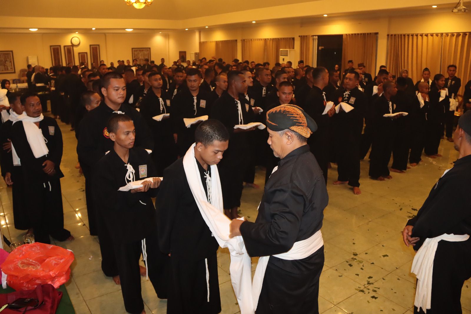 CEPOSONLINE.COM, JAYAPURA-Persaudaraan Setia Hati Terate (PSHT) Cabang Jayapura kembali mengelar pengesahan bagi para siswa yang telah menyelesaikan/menerima berbagai materi latihan, dan memenuhi syarat untuk disahkan menjadi warga baru PSHT. Jumlah siswa yang disahkan dalam malam syukuran pengesahan di aula Makorem 172/Praja Wira Yakti, Sabtu (13/7) malam hingga Minggu (14/7) pagi kemarin, sebanyak 100 orang warga baru.