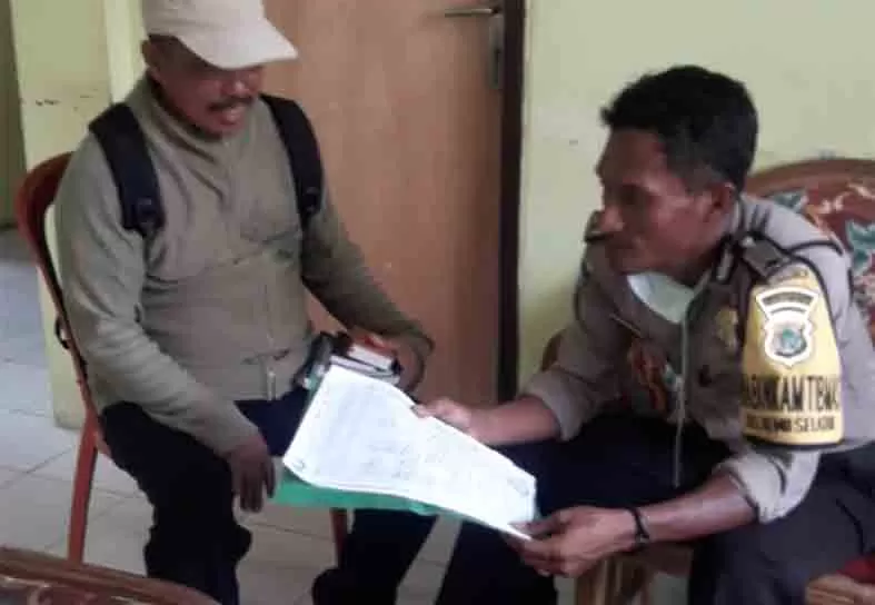 TUNJUKKAN BB DOKUMEN. Bhabinkamtibmas Remu Selatan Bripka Sutrin Nanggong menunjukkan barang bukti dokumen yang diperlihatkan pelaku setiap kali beraksi.