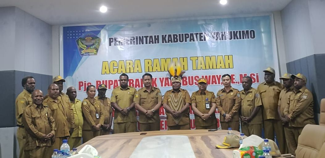 CEPOSONLINE.COM, YAHUKIMO – Pemerintah Kabupaten Yahukimo menggelar acara ramah tamah menyambut Pjs Bupati Yakobus Way,SE, MSi, di ruang kerja Bupati Yahukimo di Kali Biru, Provinsi Papua Pengunungan, Senin (30/09/2024) siang.